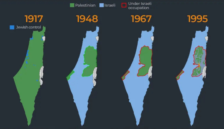 Lãnh thổ Israel và Palestine qua các thời kỳ. Ảnh: Al JazeeraCuộc chiến Sáu ngày năm 1967